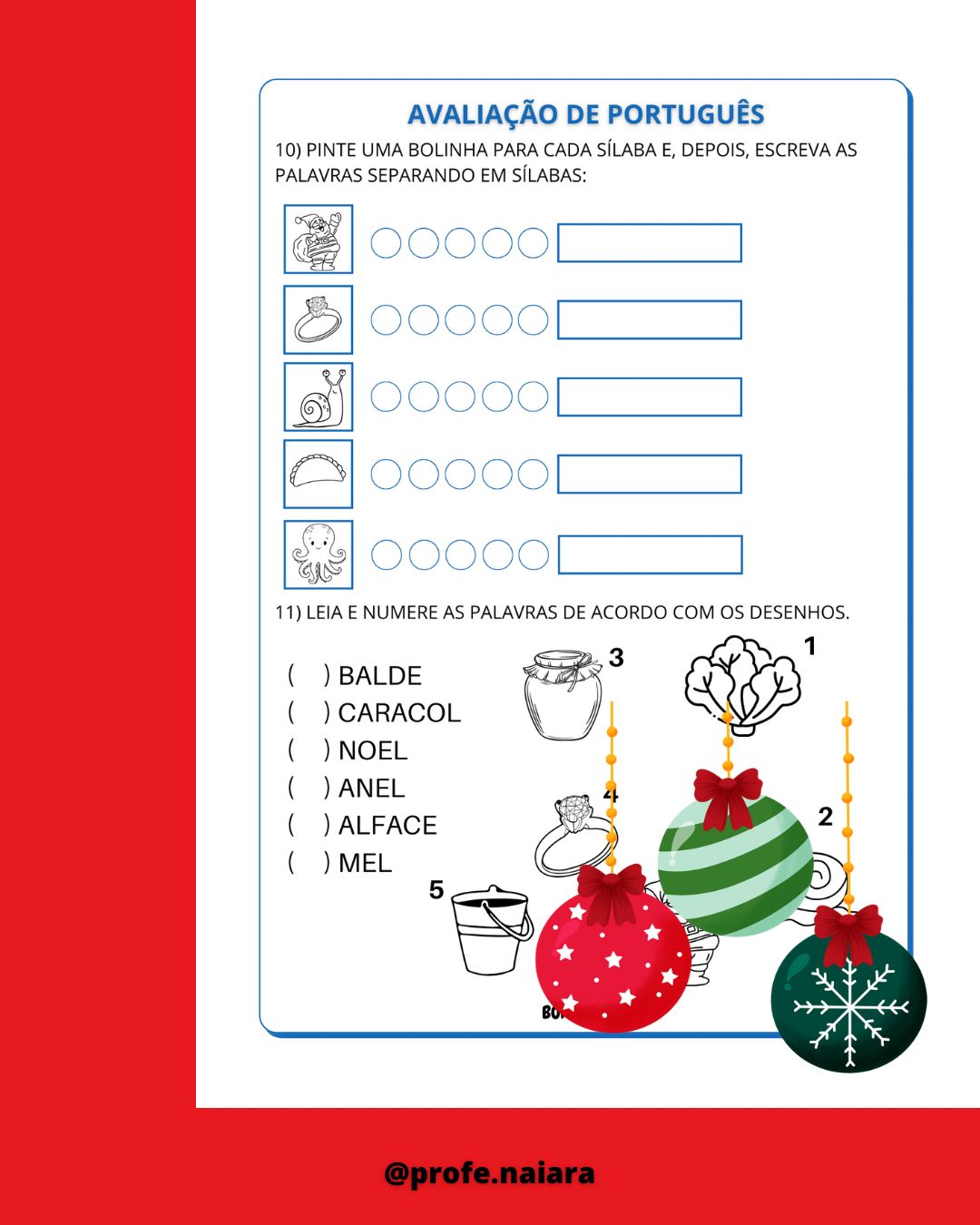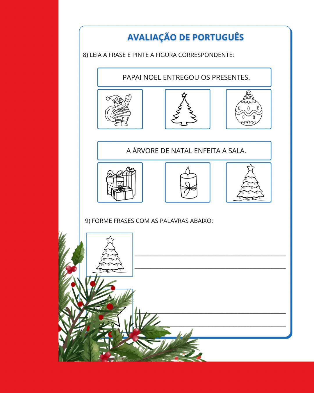 Avaliação de português Natalina com 11 questões – 5 páginas
