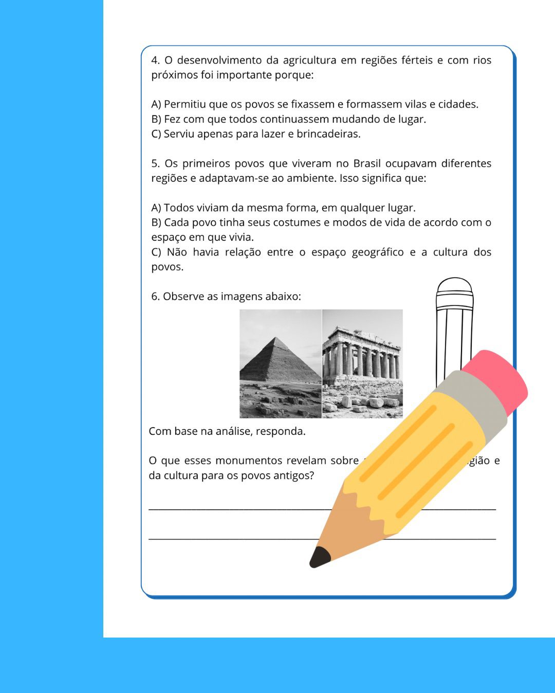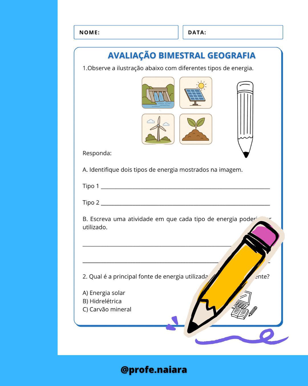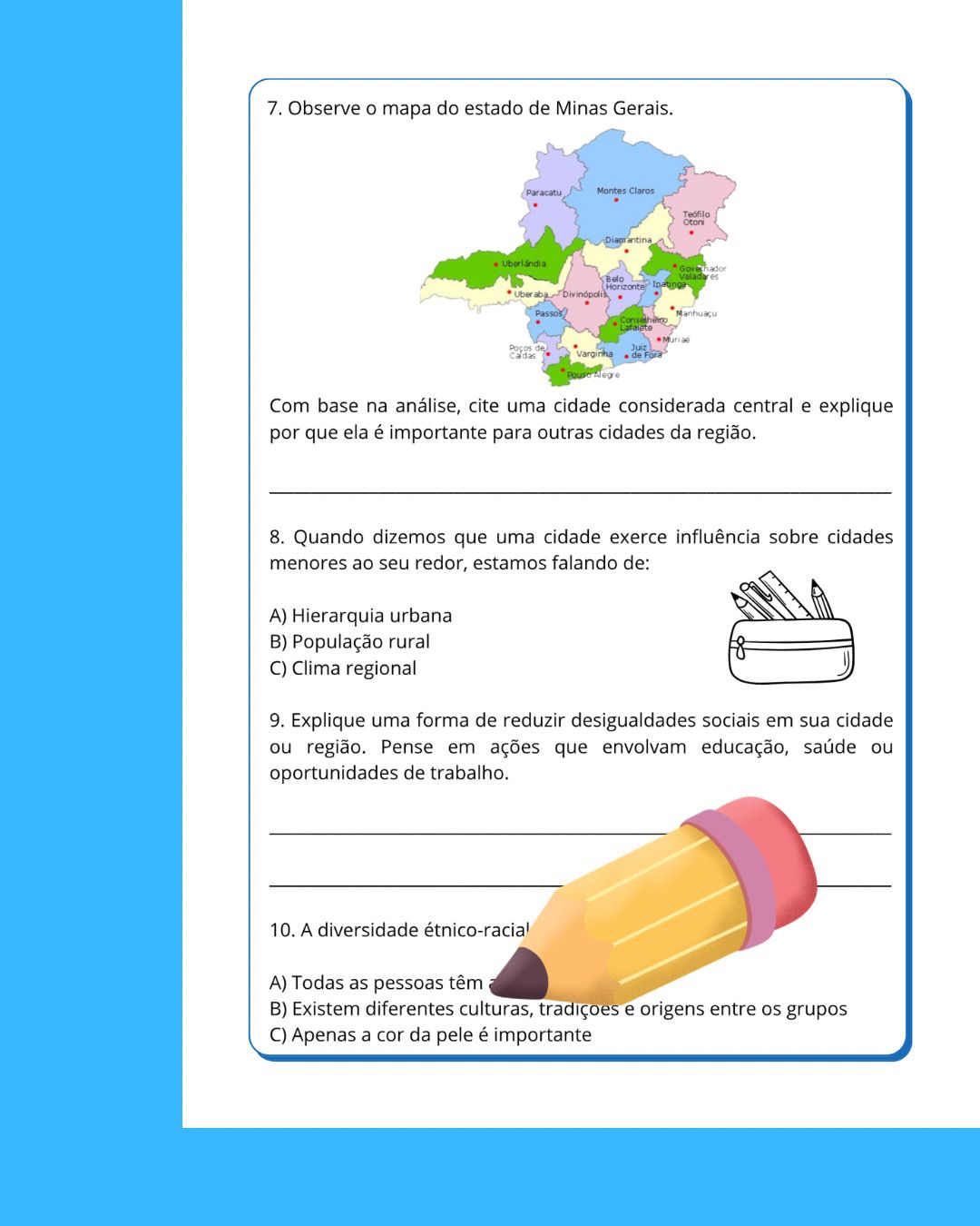 ➡️Geografia: 3 páginas, 10 questões.