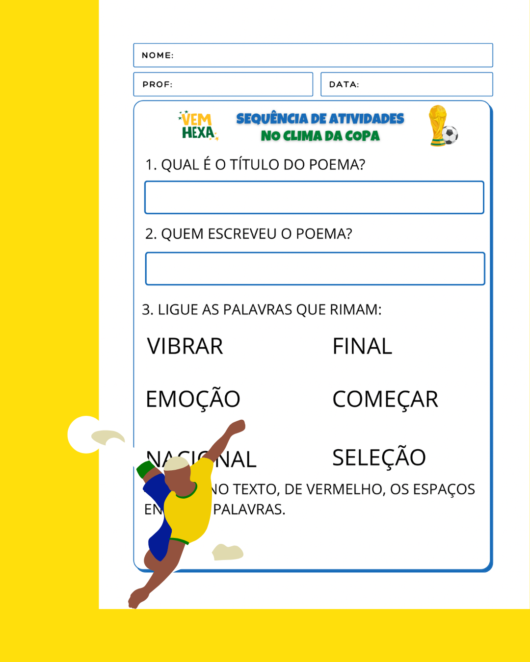 Atividades para explorar sobre a copa do mundo e desenvolver os conteúdos de 2° ano.