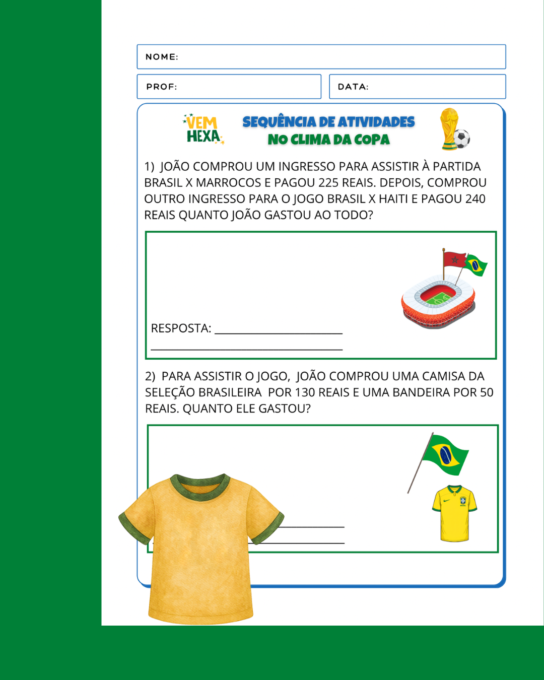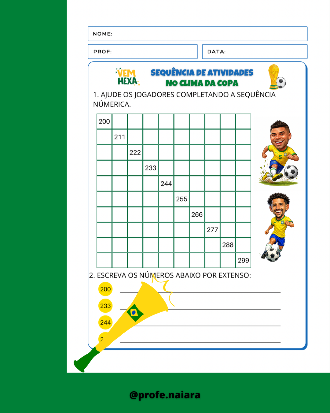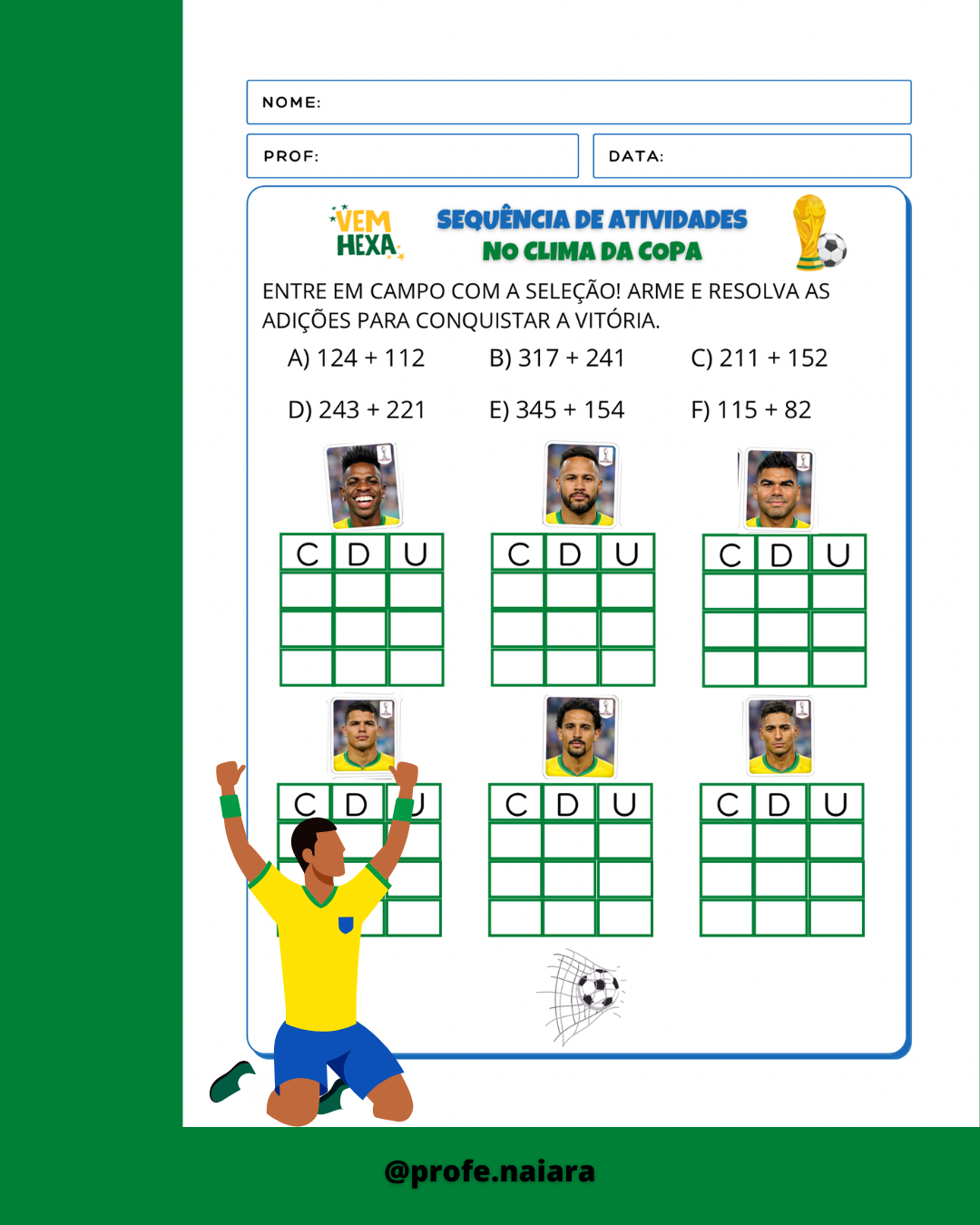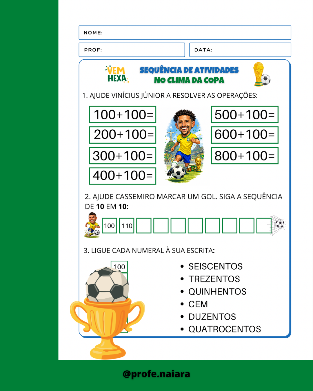 Atividades para explorar sobre a copa do mundo e desenvolver os conteúdos de 2° ano.