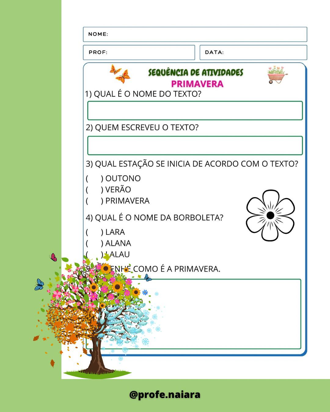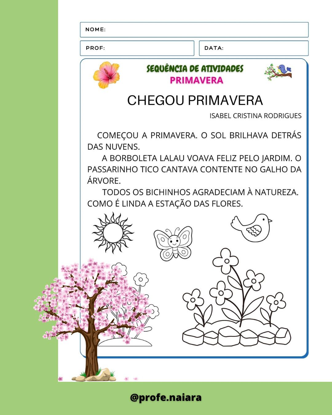 Atividades para explorar o poema Primavera, trabalhar a estação primavera e alfabetizar ao mesmo tempo.