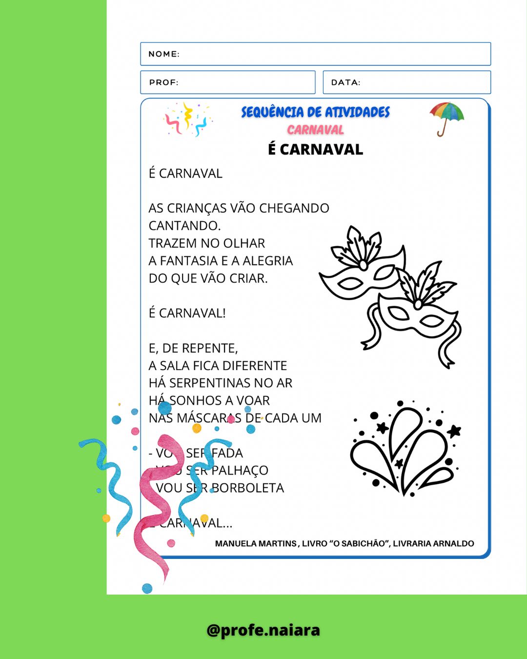 Ideal para trabalhar o tema Carnaval.