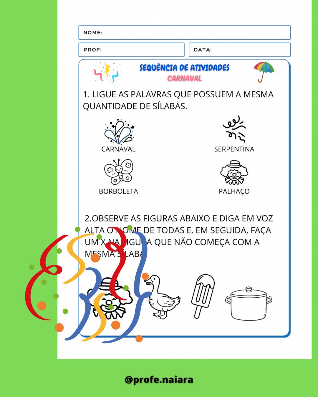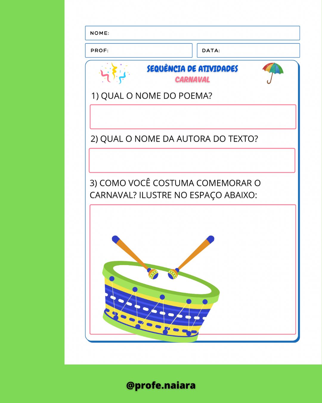 Sequência de atividades Carnaval – 1° ano