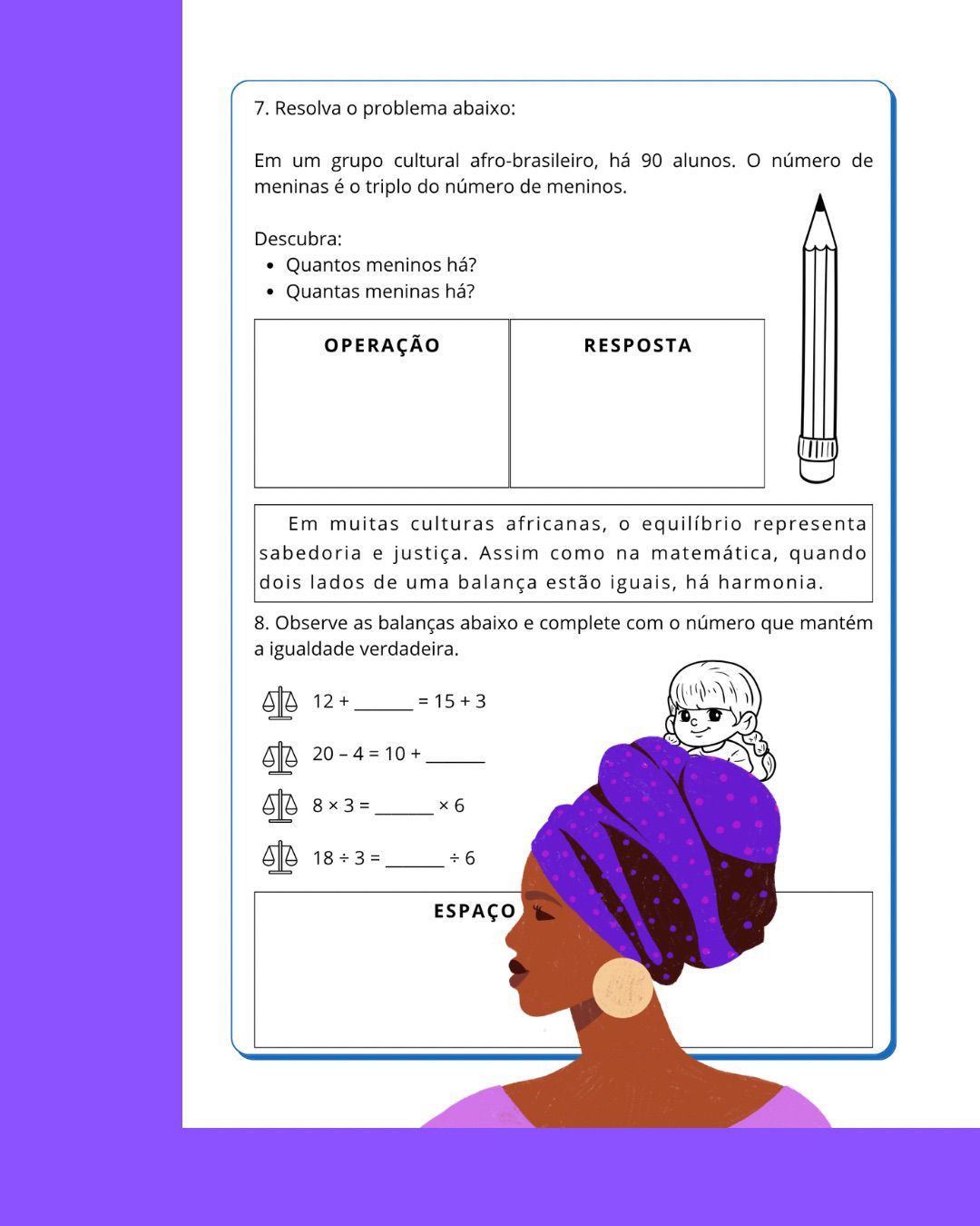 Atividades para explorar sobre a consciência negra e os conteúdos de matemática ao mesmo tempo.