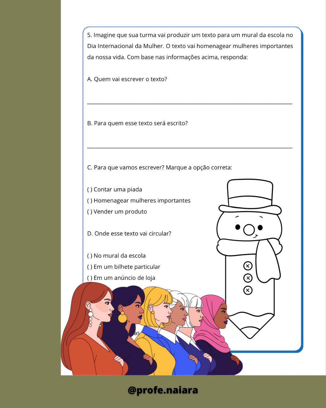 Sequência de Atividades Dia da Mulher 4° ano