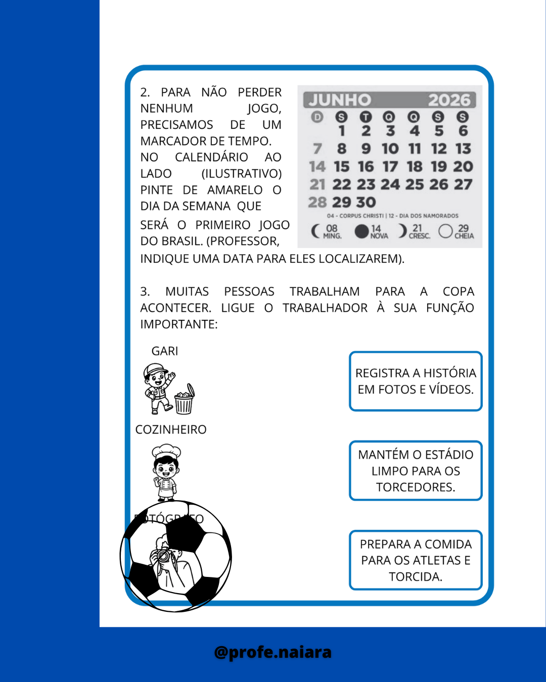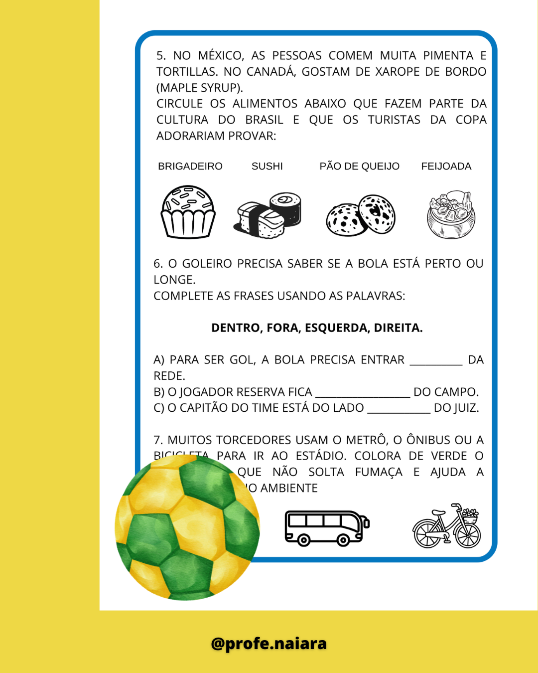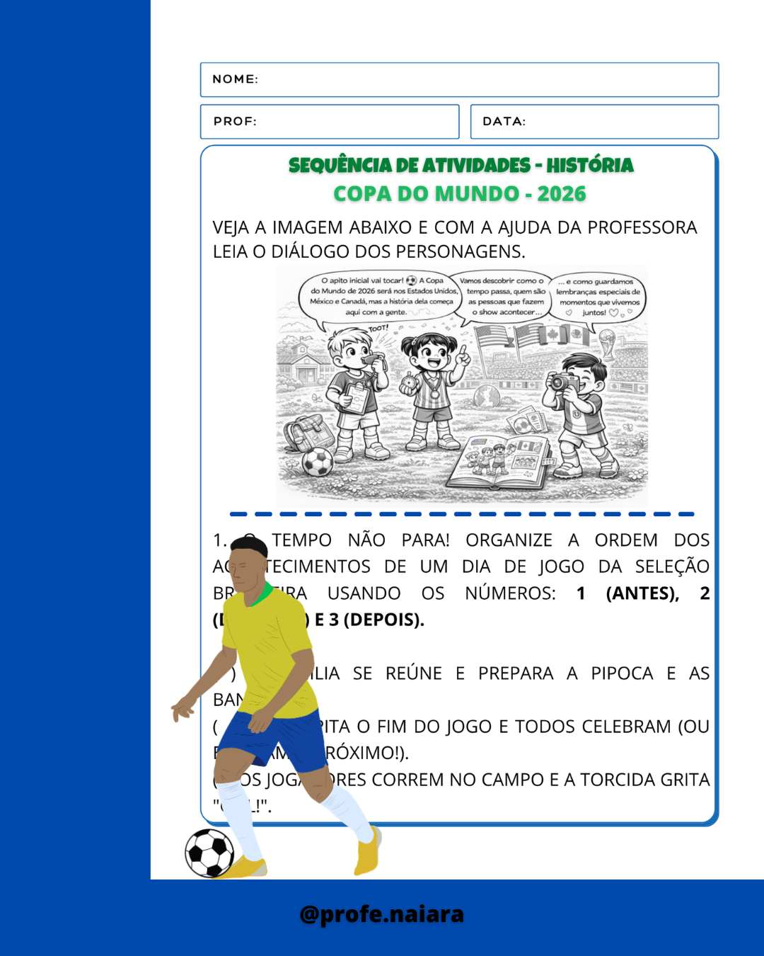 Atividades para explorar sobre a copa do mundo e desenvolver os conteúdos de 1° ano.