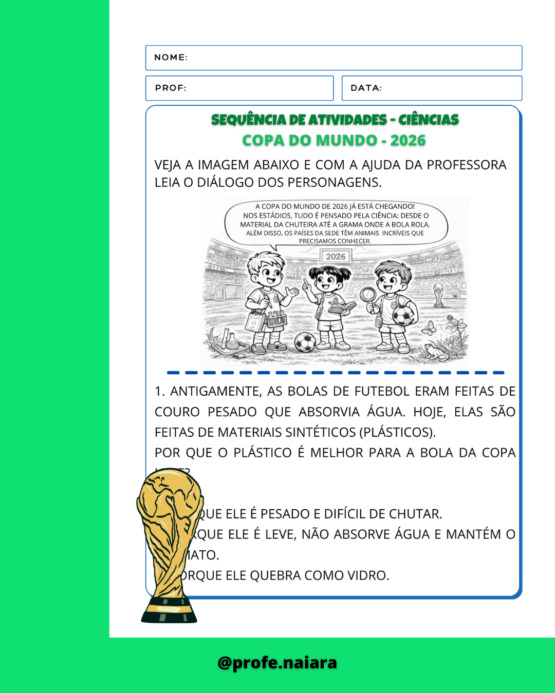 🌟As atividades são alinhadas com a BNCC e com propostas pedagógicas envolventes para trabalhar a copa do mundo com a sua turma em sala de aula.